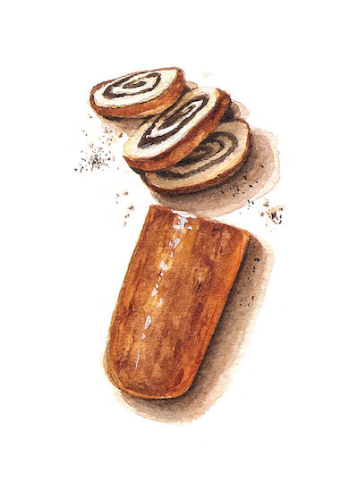 ” A bejgli magyar nevén mákos vagy diós tekercs, tradicionális magyar karácsonyi étel, hagyományosan dióval vagy mákkal, újabban gesztenyével, meggyel vagy aszalt szilvával töltött édesség, de létezik meggyes-mákos, gesztenyés-szilvás, almás-mákos és káposztás változata is. A népi hiedelem szerint a diót rontás ellen kell enni, a mák pedig bőséget hoz a házhoz.” (wikipédia)